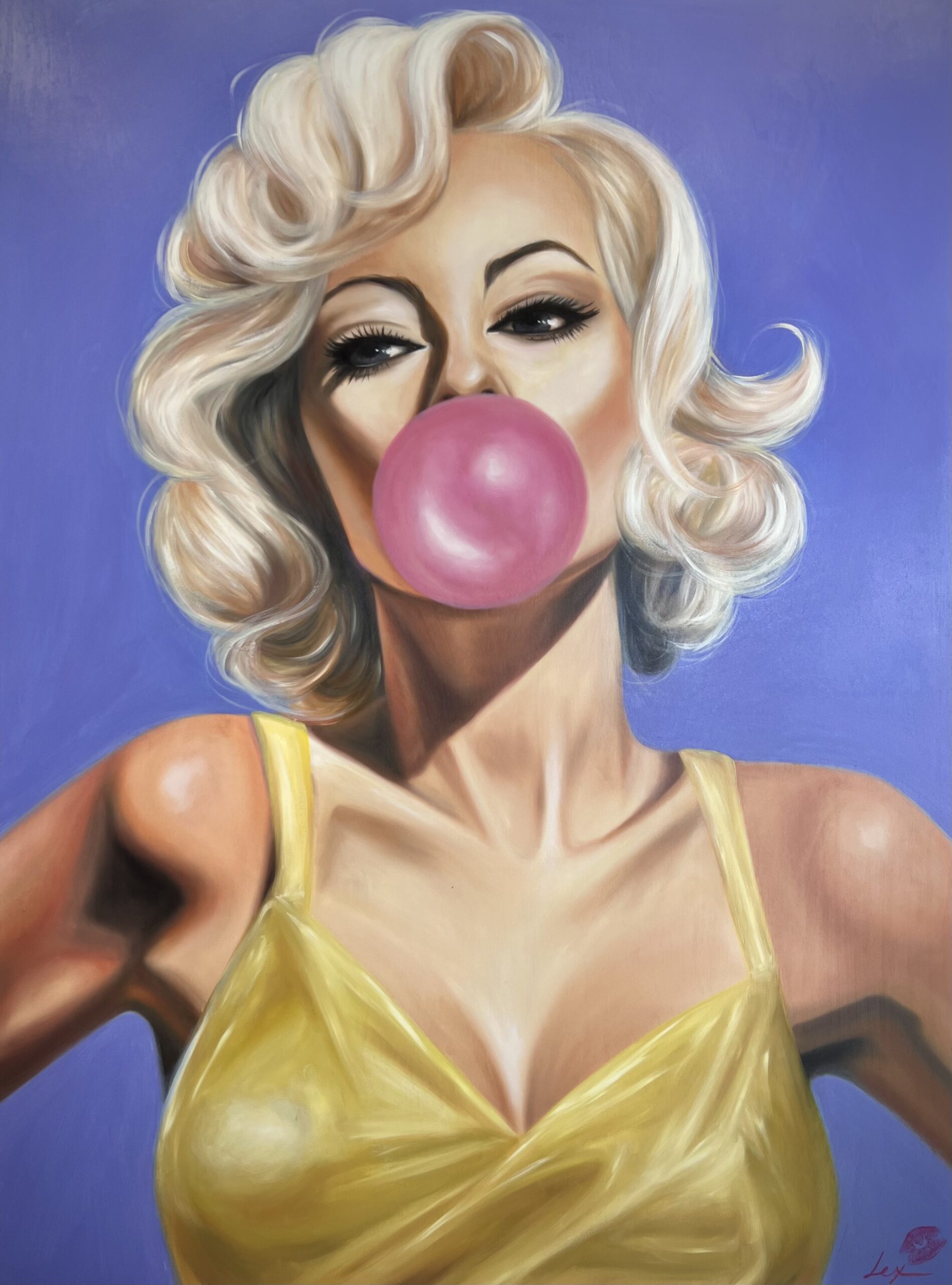 Known for fusing modern cosmetics with classical mediums, this limited edition print of it's original painting is signed and sealed with Lex's signature kiss print on archivable paper.