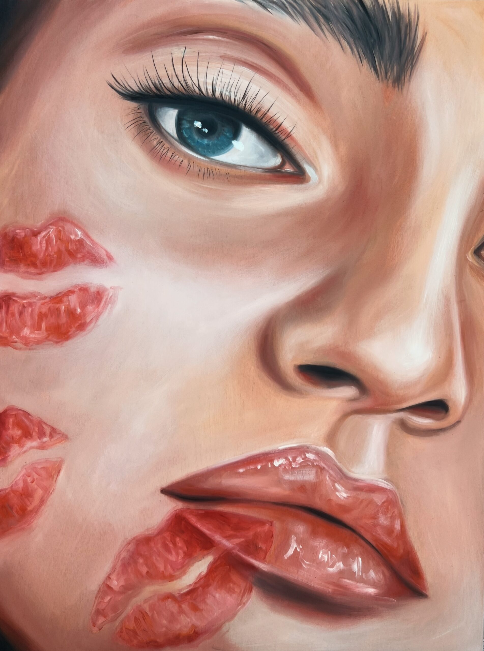 Known for fusing modern cosmetics with classical mediums, this limited edition print of it's original painting is signed and sealed with Lex's signature kiss print on archivable paper.