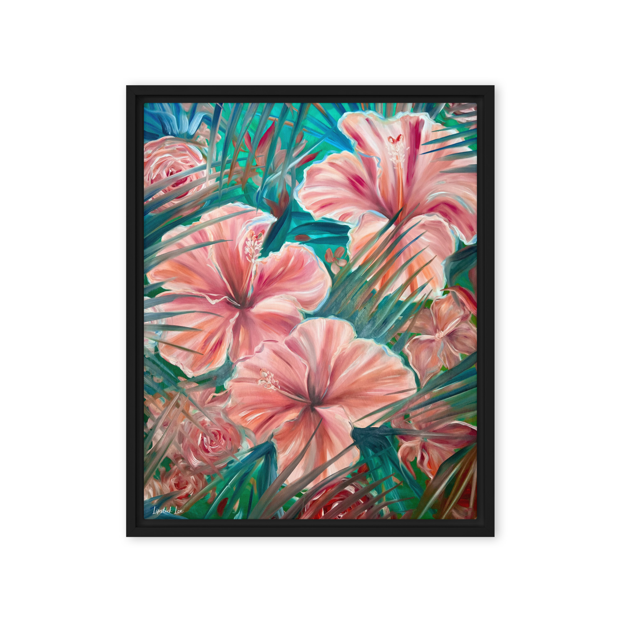 Tropical Whispers Tropical Whispers – Pink Hibiscus Floral / Framed Canvas